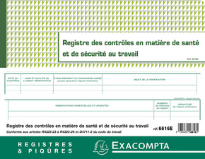 EXACOMPTA Piqûre “Registre des contrôle en matière de santé – ——————— pour le marché: F ——————– et de sécurité au travail”, 240 x 320 mm horizontal,20 pages (6616E)