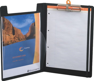 EXACOMPTA Porte-bloc avec rabat EXABOARD, A4, PP, noir – avec élastique pour maintenir le rabat et porte stylo à ressort, pochette plastique A4 sur le rabat intérieur, clip métal pour maintenir les feuilles, inclus bloc-notes ligné (52134E) EXACTIVE