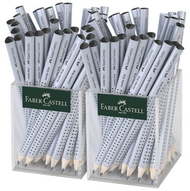FABER-CASTELL Crayon Jumbo GRIP dans un pot, argent – épaisseur de mine: 3,25 mm, laqué argent, grip soft, laque à base d’eau, triangulaire, dans un pot transparent, contenu: 72 pièces (2 carquois à 36 pièces) (111965)