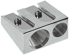 FABER-CASTELL Double taille crayon en Metall, argent – pour crayons et crayons feutres de couleur jusqu’à 10 mm avec lame de haute qualité, Dimensions: (L)25 x (P)25 x (H)7 (183400)