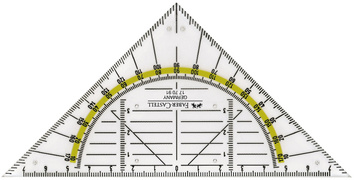 FABER-CASTELL Equerre géométrique BK 25 petite, sans poignée – combinaison d’équerre, mesure, règle parallèle, rapporteur et dessinateur polygone, plastique spécial transparent hypoténuse: 140 mm (177091)