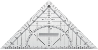 FABER-CASTELL Equerre géométrique GRIP grand, avec poignée – avec piquots GRIP pour un maintien sûr, extra solide, graduation à cadre de 10 mm, bords anti-tache, poignée amovible, hypoténuse: 220 mm (171010)