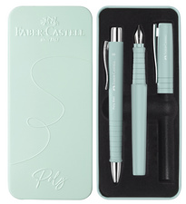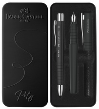 FABER-CASTELL Set de stylos POLY BALL/PEN, noir – contenu: 1x stylo plume POLY PEN noir, plume: B 1x stylo à bille rétractable POLY BALL noir dans un élégant étui métallique (241050)