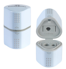 FABER-CASTELL Taille-crayon 3 trous GRIP, bleu ciel – pour crayons de papier et de couleur Standard et JUMBO, pour toutes les formes usuelles, en plastique, insert métal (183874) sky blue