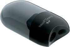 FABER-CASTELL Taille-crayon double, noir – avec réservoir à déchets pour tailler facilement et proprement, pour les crayons et crayons de couleur, pour toutes les formes de crayons courants, standard + JUMBO dimensions: (L)80 x (P)45 x (H)25 mm (183500)
