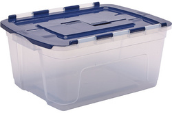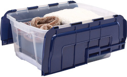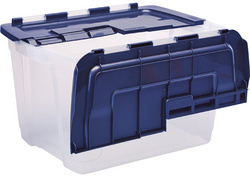 Fellowes Boîte de rangement BANKERS BOX, 45 L – en PP 100% sans BPA, entièrement recyclable, couvercle en deux parties avec charnières – partagé en son milieu, empilable & encastrable, boîte: transparent, couvercle: bleu foncé, dimensions: (L)590 x (P)430 x (H)280 mm (100135774)