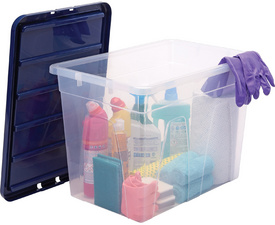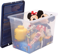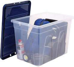 Fellowes Boîte de rangement BANKERS BOX, 64 L, transparent – boîte: transparent, couvercle: bleu foncé, couvercle avec fermeture par clic, en plastique, couvercle en matériau 100% recyclable, empilable & encastrable pour un gain de place, dimensions: (L)560 x (P)380 x (H)410 mm (100135773)