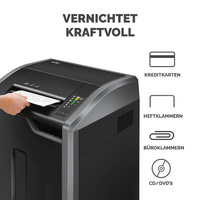 Fellowes Destructeur de doc. Powershred 425Ci, part. suisse – ——————– pour le marché: CH ——————– 4 x 30 mm, capacité de coupe: 30-32 feuilles, corbeille:121l entrée: 305 mm, détruit CDs/cartes de crédits/agrafes et trombones, sécurité: P-4/0-3/T-4, noir/argent, dimensions: (L)559 x (P)508 x (H)965 mm, fiche CH (4698801)