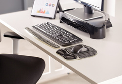 Fellowes Repose-poignet pour clavier Photo Gel, noir/blanc – gel transparent avec photo en fond, s’adapte parfaitement au poignet, avec protection Microban, à nettoyer avec un chiffon humide, dimensions: (L)473 x (P)56 x (H)14 mm (9653601)