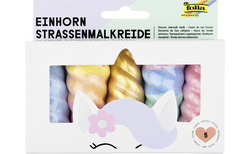 folia Craie de trottoir “licorne”, assorti – lavable, 35 g pièce, assorti dans les couleurs bleu clair, dégradé jaune/orange/rose, dégradé rose/bleu clair/menthe, rose et or, forme solide, tient bien dans la main contenu: 5 pièces (380509)