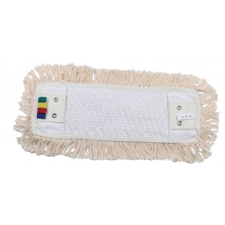Frange en bouclettes coton fermées sur la face interne et ouvertes sur les cotés. La grande quantité de bouclettes sur la face utile permet un travail efficace et homogène. Languette avec 2 oeillets inox.