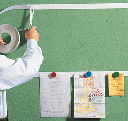 FRANKEN Bande magnétique, 50 mm x 5 mm, autocollant, blanc – à couper à la longueur souhaitée, avec rembourrage de mousse autocollant, inscriptible, épaisseur: 0,3 mm, livré avec 10 aimants inclus (ST1605)