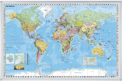 FRANKEN Carte du monde, à fixer, (l)1.380 x (H)880 mm – inscriptible, cadre en aluminium – 12 mm, coins plastique, matériel de fixation inclus, échelle 1:33