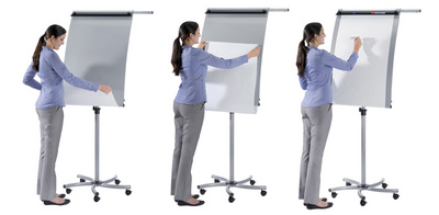 • chevalet de conférence élégant avec surface arquée et un système innovant de papier en continu