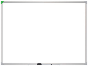 FRANKEN Tableau blanc magnétique U-Act! Line, laqué – 600 x 450 mm, magnétique, inscriptible, effaçable à sec, cadre en aluminium anodisé argent avec coins en plastique en gris clair/vert, avec auget et matériel de montage, à 60 % en matériaux recyclés, surface inscriptible: blanc (SC914560)