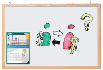 FRANKEN Tableau mural blanc avec cadre en bois, 1.000 x 600 – mm, magnétique, surface laquée, fourni avec matériel de fixation (CC-MM60100 E)