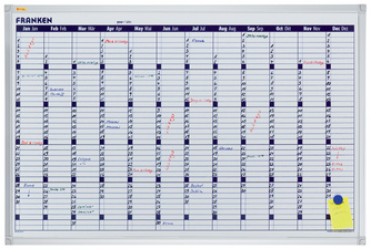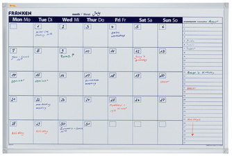 FRANKEN Tableau planning X-tra!Line semainier, 900 x 600 mm – tableau magnétique et inscriptible, laqué, cadre en en aluminium avec coins en plastique, auget aperçu mois ou 7 jours, plannification du mois à venir, champ journalier 100x100mm, champ des projets 160x18mm (VO-7)