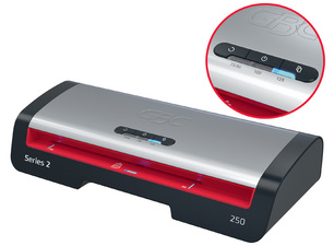 GBC Plastifieuse 250, jusqu’au format A4, noir/argent/rouge – largeur de plastification: 210 mm,pour épaisseur 250 microns (2x 75/125 microns), temps de préchauffage: 1 minute, vitesse de plastification: 500 mm/minute, fiche de courant avec terre – pour CH incl