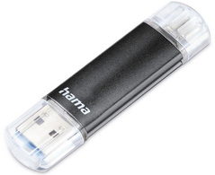 hama Clé USB 3.0 “Laeta Twin”, 256 GB, noir – boîtier en aluminium, taux de transfert: 40 MBit/s, connexion: micro USB-B 2