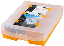 HAN Boîte à fiches CROCO 2-6-19, A8 paysage, orange – translucide, couvercle: translucide, polypropylène, à l’ou- verture, le couvercle se glisse sous la boîte, 100 fiches incl
