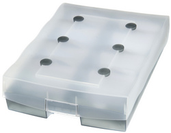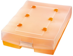 HAN Boîte à fiches CROCO DUO, A8 paysage, gris translucide – couvercle: translucide, polypropylène, à l’ouverture, le couvercle se glisse sous la boîte, 8 cases ajustables pour max