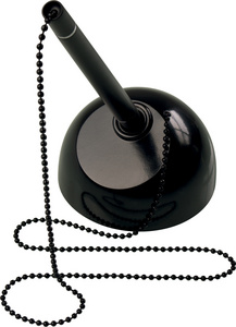• stylo avec une chaîne en métal chromé noir (longueur: 57 mm) fixé sur le socle