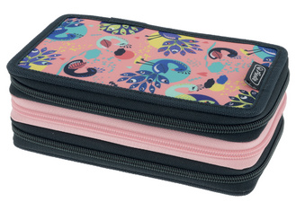 herlitz Étui scolaire TriCase “Fancy Peacock”, 31 pièces – en polyester, étui scolaire en 3 parties, 3 fermetures à zip de couleur, doublure colorée, garni de 31 pièces, (nouveau: 300001484 / ancien: 50043392) garni de: stylo à bille, règle pochoir, feutres, crayons de couleur, crayons à papier, taille-crayon, gomme, règle, équerre, mini-rapporteur