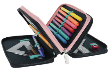 • 31 pièces : 8 crayons de couleur, hexagonal 14 feutres 2 crayons à papier, hexagonal 1 stylo à bille 1 règle, 160 mm 1 équerre 1 mini