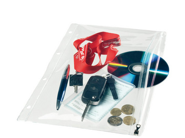 herlitz Pochette à fermeture zip, PVC, couleurs – assorties, côté extérieur avec fermeture à glissière, sans plastifiant, détachable, 4 perforations, ranger les objets, assorti chaque 2x transparent, rouge, bleu, bleu clair &noir en paquet de 10 pièces (nouveau: 300000570 / ancien: 5506019) dimensions de la pochette: 300 x 180 mm