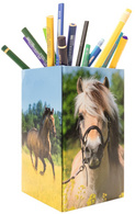 HERMA Pot à crayons “Pré à chevaux”, carton – en carton solide, effaçable et facile à nettoyer, dimensions: (L)220 x (T)230 x (H)315 mm (19734)