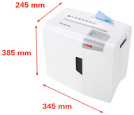 HSM Destructeur de documents shedstar X8, coupe particules: – 4,5 x 30 mm, capacité de découpe: 8 feuilles (80 g/m2), volume de recueillement: 18 litres, niveau de sécurité: P-4/O-1/T-2/E-2/F-1, largeur d’entrée: 220 mm, poids: 4,8 kg avec coupe CD separé, couleur: blanc/argent dimensions: (L)345 x (P)245 x (H)385 mm (1044121) fiche euro