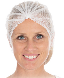 HYGONORM Charlotte PP à clipser, intissé PP, blanc – réalisée par une machine, élastique sans latex, à usage alimentaire, perméable à l’air, pour l’identification de différentes zones hygiéniques, diamètre: 53 mm, contenu: 100 pièces dans une boîte distributrice (1210)