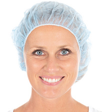 HYGOSTAR Charlotte PP Bettina, diamètre: 530 mm, blanc – à usage unique, en PP non tissé de qualité, respirant, avec élastique sans latex, adapté au contact alimentaire, contenu: 100 pièces dans une boîte distributrice (1264)