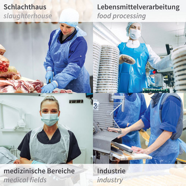 HYGOSTAR Tablier à bavette en LDPE, 35 microns, blanc – lisse, taille unique, en polyéthylène (LDPE), étanche, convient au contact alimentaire, très solide, particulièrement élastique & résistant aux déchirures, contenu: 50 pièces sur rouleau (23170) longueur: 1