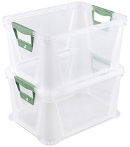 • s’empile de façon sécurisée et en permettant un gain de place (avec et sans couvercle)