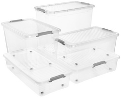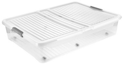 keeeper Boîte de rangement sous lit “leo”, 53 litres – en PP transparent, dimensions: (L)580 x (P)770 x (H)160 mm roulettes pivotantes à 90 degrés, fermeture à clip, ouverture double (1100200100000)