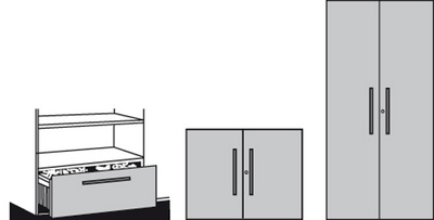 Système de rayonnage et d’armoire Dante sans paroi arrière, 5 hauteurs de classeur