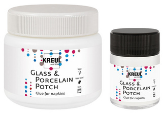 KREUL Glass & Porcelain POTCH, 50 ml – vernis – colle pour serviettes à base d’eau, pour techniques de serviette sur porcelaine, imperméable et lavable dans le lave-vaisselle après la cuisson à 130 degrés pendant 90 minutes, dans un flacon en verre (49450)