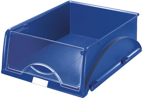 LEITZ bac à courrier Sorty, format A4/C4, bleu – en plastique, pour tailles sup jusqu’à 253 x 326 mm, clapet frontal gris-transparent enlevable et bloquable, empilable jusqu’à 12 pièces, étiquettage mobile, en paquet de 4 pièces (5231-00-35) dimensions: (L)291 x (P)380 x (H)127 mm 5231-35
