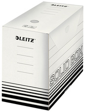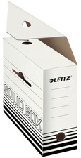 LEITZ Boîte à archives Solid, (L)100 mm, blanc/noir – en carton rainuré recyclé à 100%, double fond et parois latérales, avec assemblage automatique en quelques secondes, pour formats de A4 à Folio en paquet de 10 pièces (6128-00-01) dimensions: (L)257 x (H)330 mm