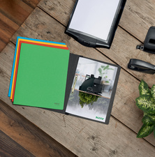 LEITZ Chemise à lamelle Recycle, A4, carton, bleu – en carton 100% recyclé, 100% recyclable, 275 g/m2, contenance: 250 feuilles, mécanisme de reliure pour perforation standard de 80 mm, en paquet de 10 pièces (39040035) dimensions: (L)275 x (T)318 x (H)1 mm