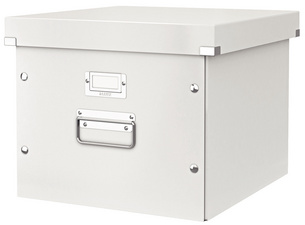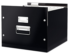 LEITZ Coffret pour dossiers suspendus Click & Store, noir – pr 15 dossiers A4, dimensions: (L)356 x (P)370 x (H)282 mm, carton dur pelliculé film transparent PP, montage par bouton poussoir, protection bord, poignée, & porte-étiquette nickelé, champ d’inscription, étiquettes incl
