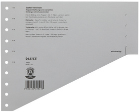 LEITZ Intercalaires-échelon, format A4 extra large, gris – carton rigide 200 g/m2, à travers une dispossition échelonnée on peut former des répertoires de 3, 4, 6 ou 11 feuilles, extensible à un répertoire de 15 feuilles, le mode d’emploi est imprimé sur chaque feuille, échelonnage décalé, dimensions: (L)240 x (H)205 mm, (1651-00-85) contenu: 100 pièces