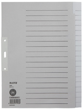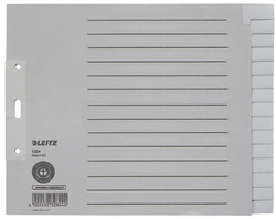 LEITZ Intercalaires en papier naturel, uni, A4 extra-large – 10 touches, gris, 100 g/m2, perforation: 80 mm, avec trous renforcés sur la 1ère feuille, impression de lignes sur la 1ère feuille pour inscription du contenu, trous et onglets renforcés, dimensions: (L)240 x (H)300 mm (1221-00-85)