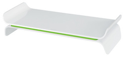 LEITZ Support pour écran Ergo WOW, en plastique, blanc/vert – convient pour les écrans jusqu’à 68,58 cm (27″), lorsque le clavier n’est pas utilisé, il peut être glissé sous le support, capacité de charge : 20 kg dimensions : (L)483 x (P)209 x (H)112 mm (6504-00-54)