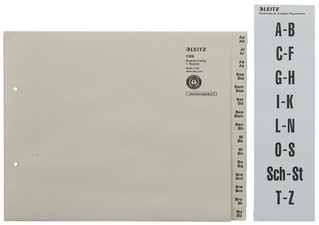 LEITZ Tauenpapier-Register, A-Z, für 6 Ordner, grau – ————– für den Markt: D / L / A / CH ————— 90-teilig, A4 Überbreite, halbe Höhe, 100 g/qm, Lochung: 80 mm, mit Lochverstärkung des 1