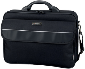 nylon, noir, écran de 43,18 cm (17″), poignée plastique dur, lanière de fixation, poche avant à fermeture à zip avec organiseur, compartiment rembourré pour portable, compartiment d’insertion, A4, dim