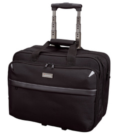système trolley blocable sur 100 cm, poche avant à fermeture zip avec 3 compartiments pour documents, passants pour stylos, compartiments pour cartes de visite, intérieur: compartiment rembourré pour