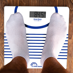 Little balance Pèse-personne digital Marinière, port USB-C – sans pile, rechargeable, technologie de charge USB-C, temps de charge: 3 h, batterie amovible et remplaçable, écran LCD, capacité de charge: 180 kg, graduations: 100 g, Auto-On, unités de mesure (g, kg, oz, lb), plateau en verre trempé (LB 8655) couleur: bleu/blanc