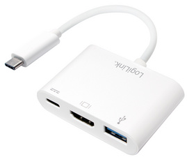 entrée: 1x USB-C mâle, 1x USB-C femelle (USB 3.1 Gen1), sortie: 1x HDMI femelle, 1x USB-A femelle, résolution HDMI jusqu’à 1080P @60 Hz, USB-A femelle: jusqu’à 5W (5V/1A), USB-C femelle de charge supp